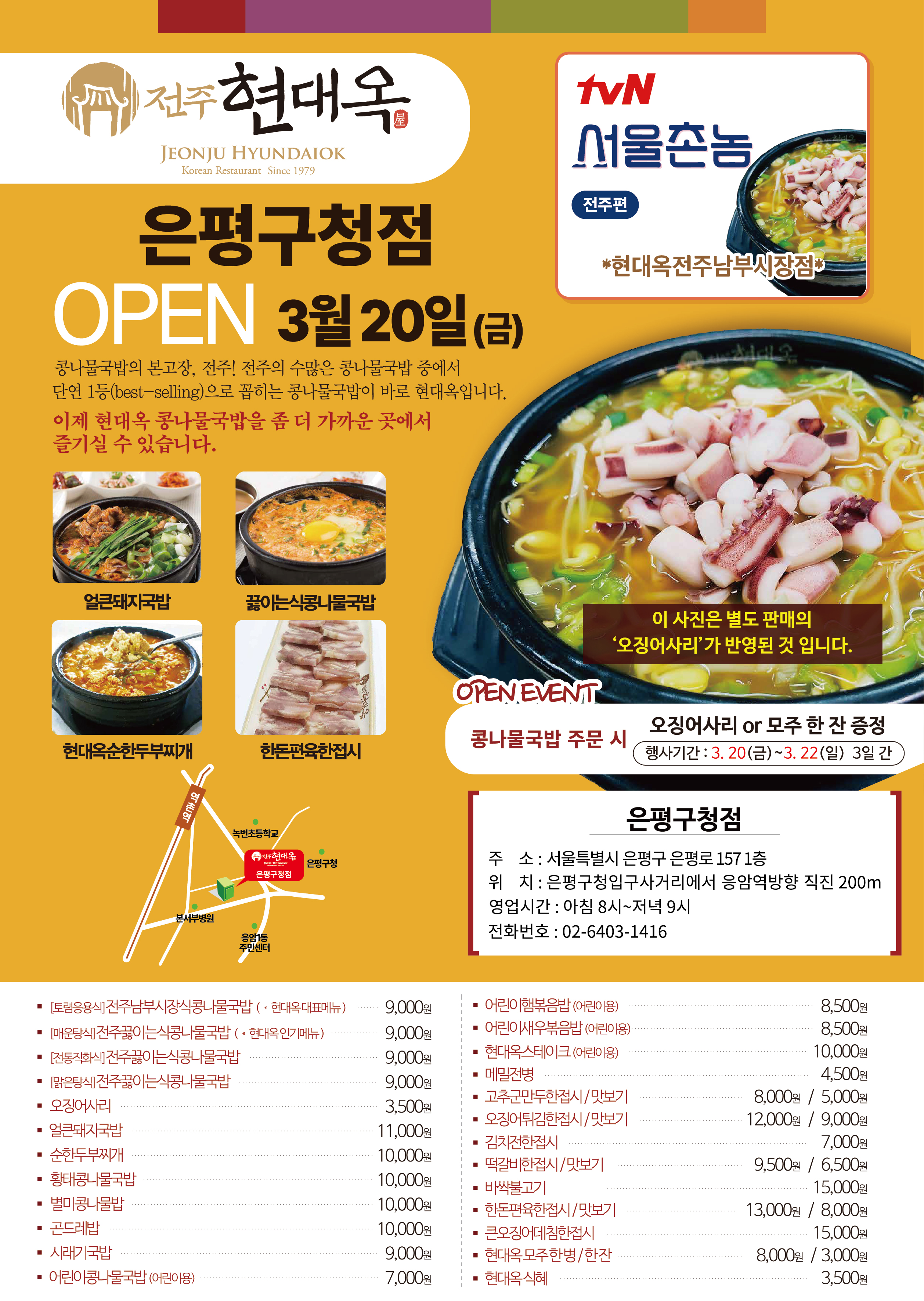 오늘자 서울 은평구 응암동에 현대옥 서울은평구청점이 오픈하였습니다. 인근의 직장인들과 주민들께서도 이제 "전주에서 온 진짜배기, 전주현대옥콩나물국밥"을 가까운 곳에서 즐기실 수 있게 됐습니다.