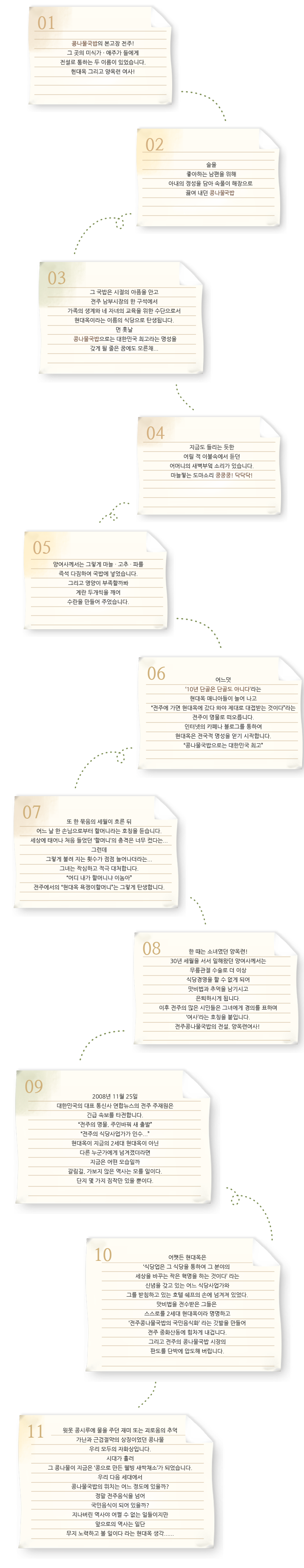 현대옥의 1세대 양옥련 여사에 얽힌 가슴 먹먹한 얘기 그리고전주콩나물국밥'을 세상에 펼쳐내어 국민음식으로 만들고자 하는 2세대 현대옥 대표의 의지와 신념이 담긴현대옥 스토리텔링'은 앞으로 현대옥본사직원들과 현대옥가맹점주, 음식전문가나 음식평론가는 물론 언론문화예술영화 관련의 많은 사람들이 참여하고 함께 만들어 가는현대옥 스토리두잉'을 통하여 고객과 함께, 대중과 함께, 미래와 함께 하여야 한다라고 독백합니다.