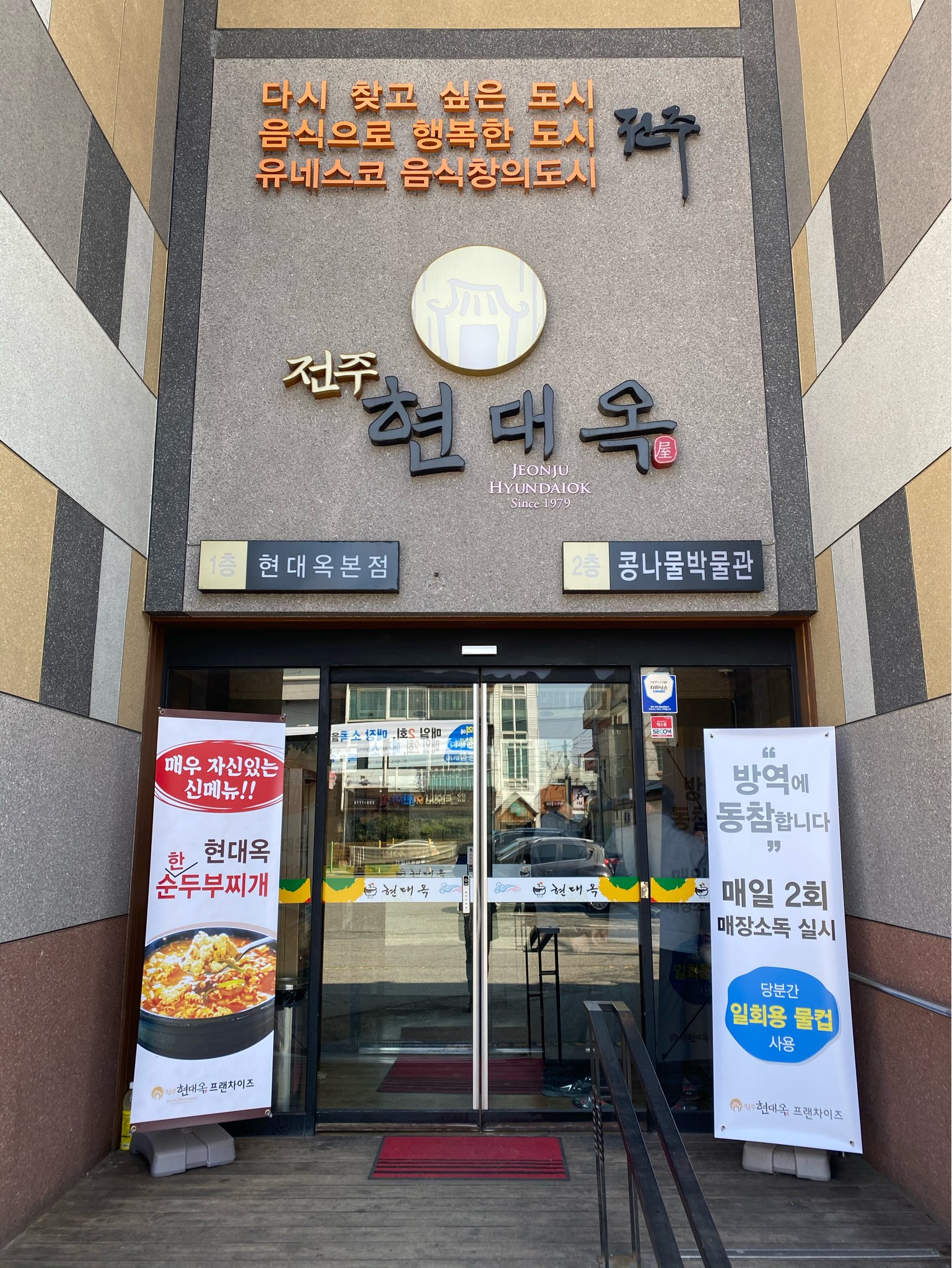 전주에서 식당을 하면서 전주의 음식 명성에 기대어 돈 버는 위주로만 장사하는 것과 그 반대로서 자신 식당 스스로가 전주의 음식 명성에 누가 되지는 말아야 한다는 생각 그리고 자신 스스로가 전주의 음식 명성을 쌓아 나가고자 하는 사명감을 갖은 채 장사하는 것과는 식당 운영 면면에서 여러 차이가 나타난다라고 봅니다. 후자 식당의 경우가 시간이 흐를수록 위력을 발휘하게 되면서 종국적으로는 성공의 크기도 클 것이고 성공의 존속도 오래오래 지속될 것이라고 생각합니다. 저희 현대옥홈페이지 현대옥에서드리는글에서는 현대옥가맹점 100호점 돌파 관련의 글로서 ‘초심을 버리자’를 쓴 바 있습니다. 누구나 장사를 시작할 때는 ‘초심’으로서 그야말로 돈을 많이많이 벌어 부자가 되고 싶다함 뿐이겠지만, 어느 시기나 어느 단계에 이르러서는 식당주인이 이 초심을 버리느냐 버리지 못하느냐에 따라 성공 여부와 성공의 크기가 달라진다라고 쓴 바 있습니다. 저희 현대옥은 콩나물국밥을 주된 음식으로 하고, 이에 더하여 몇 가지 국밥과 곁들임음식들을 갖추고 전주에 가맹본부를 두고 전주에서 직영본점을 운영하면서 전국 프랜차이즈사업을 펼치고 있습니다. 전주는 우리나라에서 유일하게도 유네스코 음식창의도시로 지정될만큼의 음식문화적 가치를 가지고 있는 도시이며, 년 1천만 명의 관광객이 찾는 전주한옥마을을 가지고 있는 관광도시입니다. 전주를 찾으신 관광객들께서는 ‘전주음식’을 경험하고자 합니다. 당대 전주를 대중적으로 대표하는 음식은 비빔밥 콩나물국밥 막걸리라 할 수 있습니다. 전주를 대표하고 있는 한 음식인 콩나물국밥을 주된 음식으로 한다는 것, 이 부분은 현대옥가맹본부에게는 언제나 무겁게만 느껴지는 그 무엇일 수밖에 없습니다. 이에 더하여 가맹본부 직영의 현대옥본점에는 전주를 찾아 오신 관광객들께서 많이들 방문한다는 것, 이 부분 역시도 늘 무거운 그 무엇이기도 합니다. 현대옥 전주본점은 전국 가맹사업의 본점으로서나 관광객을 맞이하는 전주 소재의 한 음식점으로서나 이래저래 잘하여야 한다라는 강박관념에 늘 짓눌릴 수밖에 없었습니다. 과연 어디까지 잘 하여야 하는 것일까? 그런데, 사실은 완결무결의 절대 식당이어야함은 포기한지 오래입니다. 다니던 직장을 그만두고 식당을 시작한 지 얼마 지나지 않아 무결점 100점의 식당 그리고 100인이면 100인 모두에게 만족되는 식당은 아예 불가능하다는 것을 깨달았습니다. 식당업은 업주 혼자 하는 것이 아닌 직원들의 일손을 빌려야 한다는 현실은 곧 업주의 의지와는 다르게 많은 부분에서 달리 결과되는 것 그리고 고객들의 성격적 기질이나 음식적 취향도 상당히 각각이라는 것, 굉장한 진상은 어느 합리적 설득도 통하지 않는다는 것에 가히 깜짝 놀랍기도 하다는 것, 소비자의 소비행태는 대략 이기적이라는 것 등을 엄연한 현실로 받아 들여야 했고, 이로써 절대 잘하자에서 다른 식당에 비하여 상대적으로 잘하자로 큰 줄기가 바뀌었습니다. ‘절대 잘하자’는 ‘100%의 고객 모두에게 무조건 고객만족 100%’여야 한다는 것이었습니다. 시간들이 흐르면서 비록 절대적이지는 못하여도 상대적으로 잘 하는 것만으로도 분명 ‘식당업은 그 식당을 통하여 그 분야의 세상을 바꾸는 작은 혁명을 하는 것이다'의 의식을 충족시키기에 충분했고, 이를 보충하는 관점으로서 ‘초심을 버리자'에 새롭게 눈 뜨게 되었습니다. 이러한 관점들에 의한 식당 경영이 곧 식당 성공과 경제적 성공으로 연결되는 것을 체험체득하면서, 이러한 관점들이 더욱 소신화되고 사업화되어졌습니다. 식당업 성공의 열쇠는 바로 이러한 관점들에 의한 경영임을 깨닫게 됐고 체질화됐고, 이를 바탕으로 지금 현대옥프랜차이즈 사업을 펼치고 있고, 이를 바탕으로 현대옥본점을 운영하고 있습니;다. 전주의 식당들 중 1등은 어디일까? 맛 가격 위생 친절 환경 마인드 등을 종합하여 볼 때, 이것저것 부족한 식당들이지만 그래도 전주의 수 많은 콩나물국밥식당들 중 1등은 어디일까? 이에 더하여 전주에서 모든 메뉴들을 통틀어서 1등을 꼽기로 한다면 그 식당은 어디일까? 사실 현대옥본점은 언제부터인가 스스로에게 이 질문을 던지기 시작하였고, 마치 신기루처럼 느껴지기도 하였고, 어쨌든 현대옥본점을 위해서라도 1등이 되어야 하겠고, 전국 현대옥가맹점들을 위해서라도 1등이 되어야겠고, 음식도시 전주를 위해서라도 1등이 되어야 하겠다는 생각을 하기 시작하였습니다. 1등을 하려 애 쓰다 보면 등수 내에라도 들겠지 그리고 그 만큼 성장하여 있겠지 하면서 언제부터인가 한 차원 높여서 실내외 환경, 위생, 메뉴의 다변화, 맛 개선, 직원의 친절 등에 좀 더 열심히 하고자 해왔습니다. 사실 이렇게 변혁하지 않고서는 닥칠 생존의 문제이기도 하였고, 고객의 불편과 불만에 대하여 업주로서 느껴야 할 책임감과 인간적 고통의 문제이기도 하였고, 그렇고 그런 식당으로 여겨지는 것을 못내 용인할 수 없는 자존감의 영역이기도 하였고, 도전과 창조라는 기업가 정신의 문제이기도 하였던 것입니다. 저희 