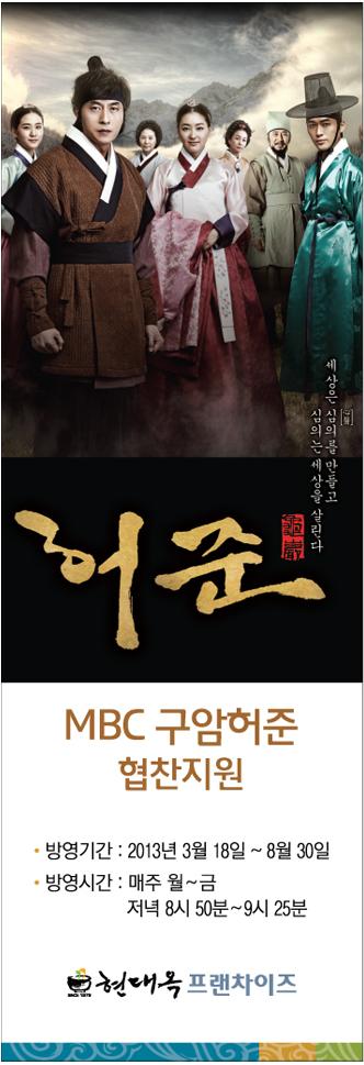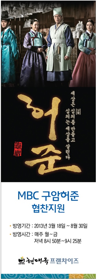 다음 주 월요일부터 방영될 mbc 일일저녁드라마 "구암 허준"(2013.03.18 ~ 08.30 ,120부작)에 저희 현대옥이 협찬지원