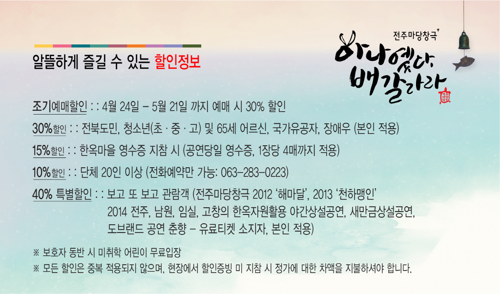 현대옥 협찬,전주마당창극 "아나옜다,배갈라라" 관람 안내