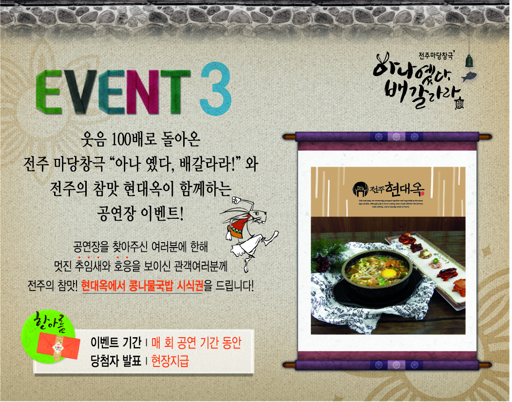일정 도움이 될 것이며 전주시민들은 현대옥을 자부심으로 받아 들이게 될 것입니다.이 이벤트 내용은 이 공연
