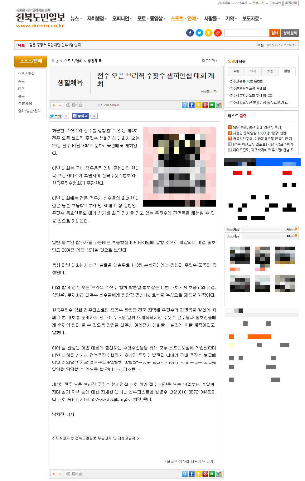 한편, 8월 29일 전주비젼대학교에서 개최되는 제4회 전주오픈 브라직 주짓수 참피언쉽 대회에 저희